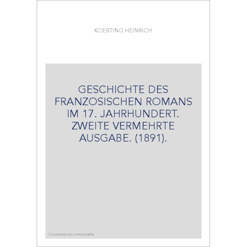 GESCHICHTE DES FRANZOSISCHEN ROMANS IM 17. JAHRHUNDERT. ZWEITE VERMEHRTE AUSGABE. (1891).