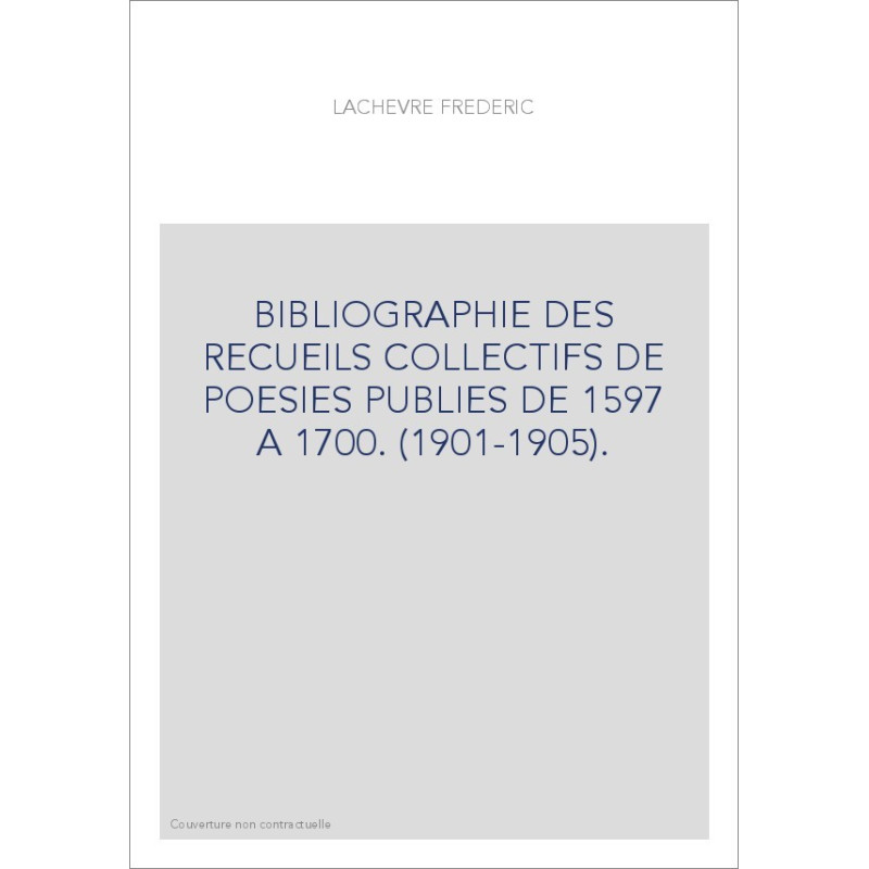 BIBLIOGRAPHIE DES RECUEILS COLLECTIFS DE POESIES PUBLIES DE 1597 A 1700. (1901-1905).