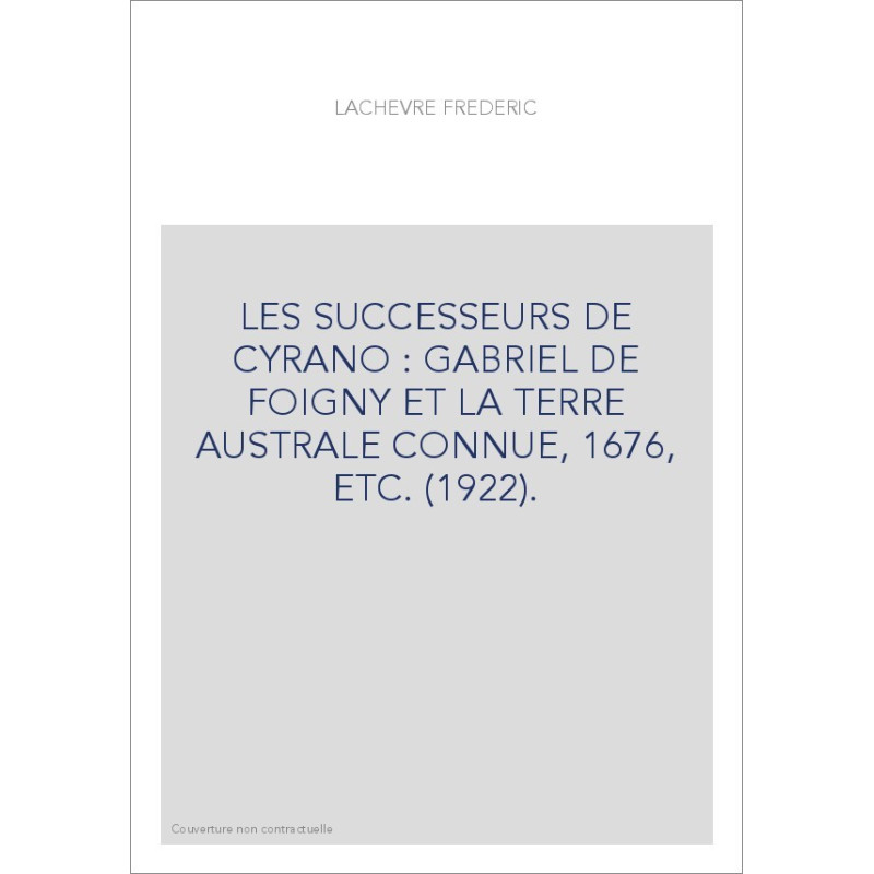 LES SUCCESSEURS DE CYRANO : GABRIEL DE FOIGNY ET LA TERRE AUSTRALE CONNUE, 1676, ETC. (1922).
