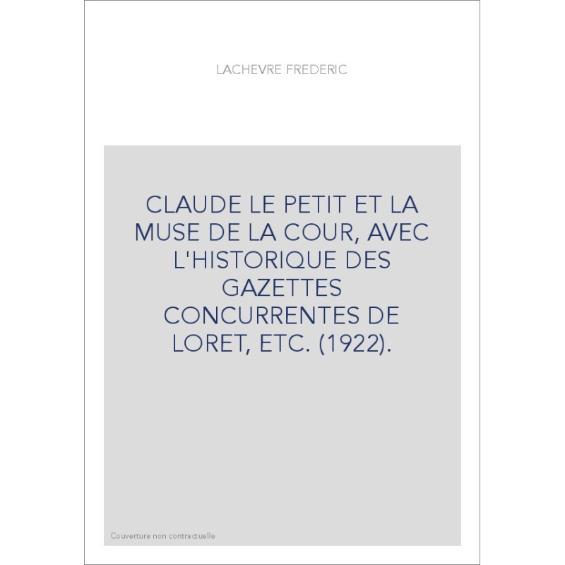 CLAUDE LE PETIT ET LA MUSE DE LA COUR, AVEC L'HISTORIQUE DES GAZETTES CONCURRENTES DE LORET, ETC. (1922).