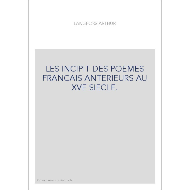 LES INCIPIT DES POEMES FRANCAIS ANTERIEURS AU XVE SIECLE.