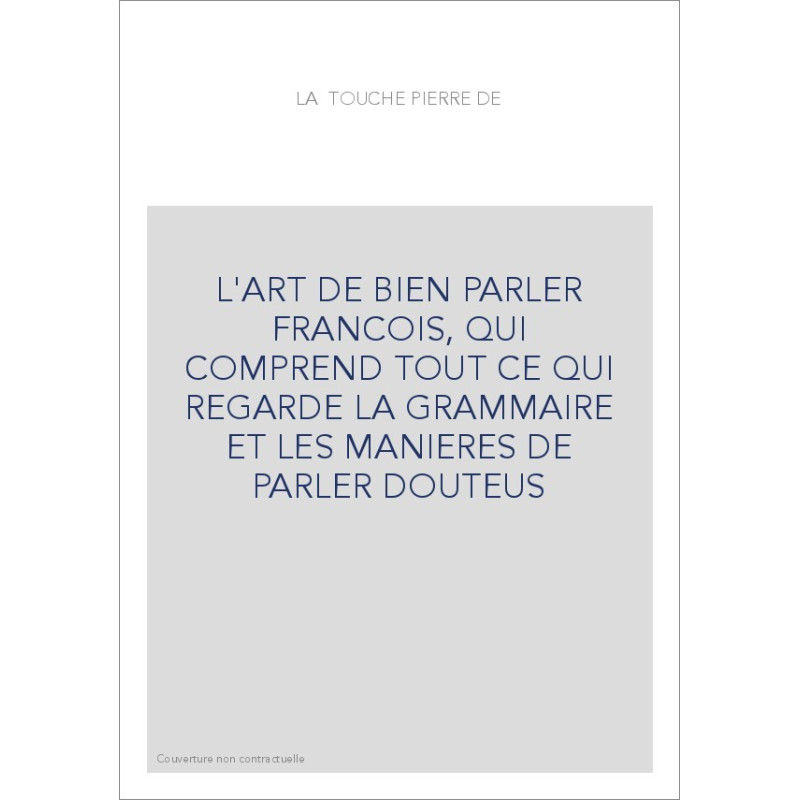 L'ART DE BIEN PARLER FRANCOIS, QUI COMPREND TOUT CE QUI REGARDE LA GRAMMAIRE ET LES MANIERES DE PARLER DOUTEU