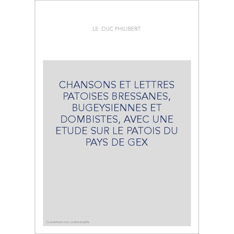 CHANSONS ET LETTRES PATOISES BRESSANES, BUGEYSIENNES ET DOMBISTES, AVEC UNE ETUDE SUR LE PATOIS DU PAYS DE GEX