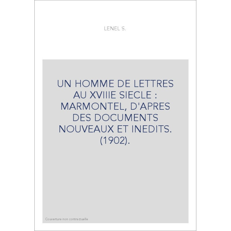 UN HOMME DE LETTRES AU XVIIIE SIECLE : MARMONTEL, D'APRES DES DOCUMENTS NOUVEAUX ET INEDITS. (1902).