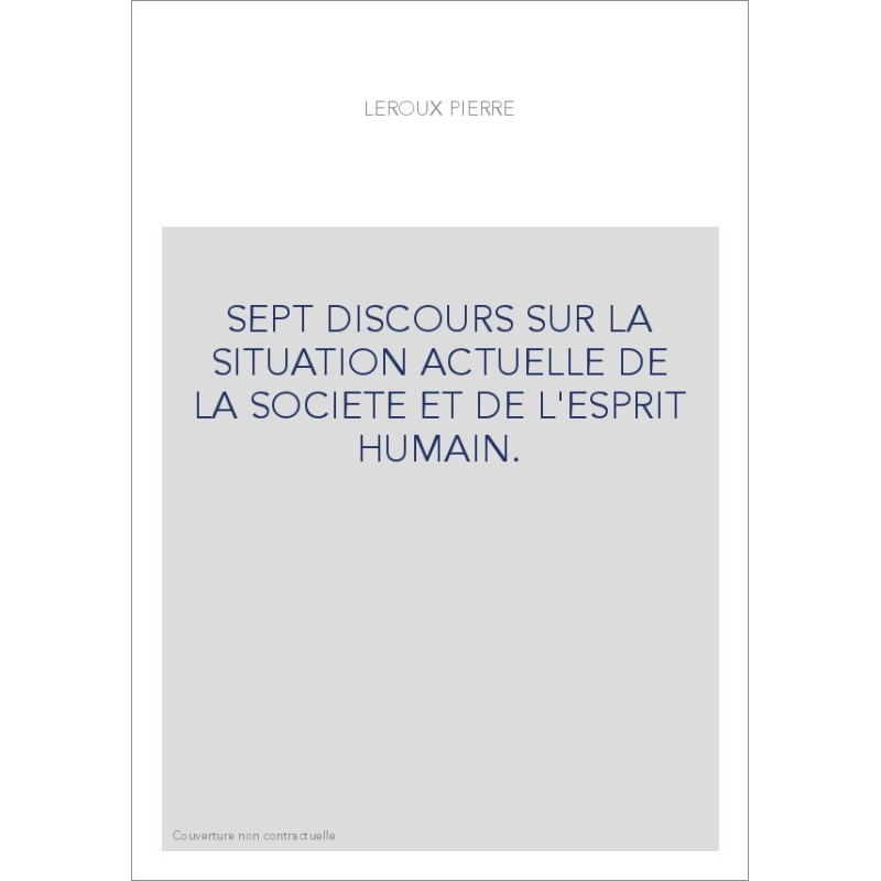 SEPT DISCOURS SUR LA SITUATION ACTUELLE DE LA SOCIETE ET DE L'ESPRIT HUMAIN.