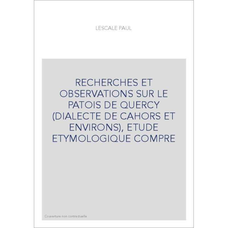 RECHERCHES ET OBSERVATIONS SUR LE PATOIS DE QUERCY (DIALECTE DE CAHORS ET ENVIRONS), ETUDE ETYMOLOGIQUE COMPRE