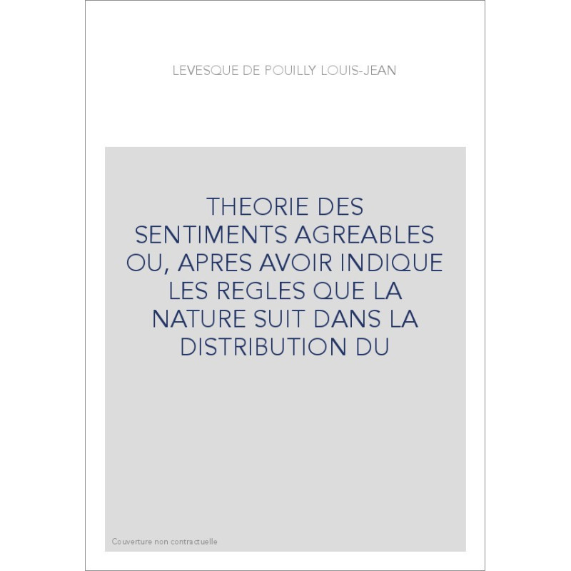 THEORIE DES SENTIMENTS AGREABLES OU, APRES AVOIR INDIQUE LES REGLES QUE LA NATURE SUIT DANS LA DISTRIBUTION DU
