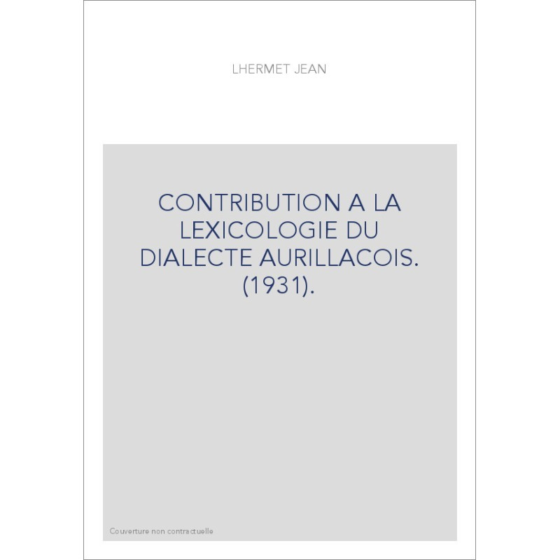 CONTRIBUTION A LA LEXICOLOGIE DU DIALECTE AURILLACOIS. (1931).
