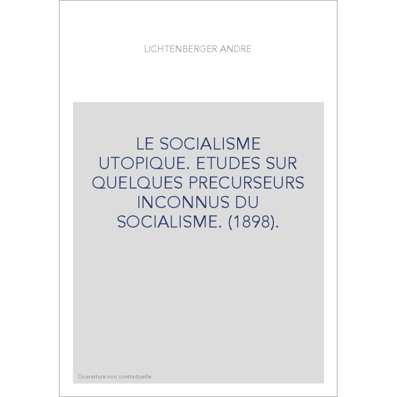 LE SOCIALISME UTOPIQUE. ETUDES SUR QUELQUES PRECURSEURS INCONNUS DU SOCIALISME. (1898).