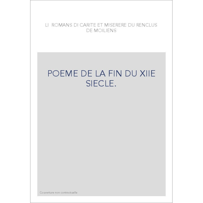 LI ROMANS DI CARITE ET MISERERE DU RENCLUS DE MOILIENS. POEME DE LA FIN DU XIIE SIECLE.
