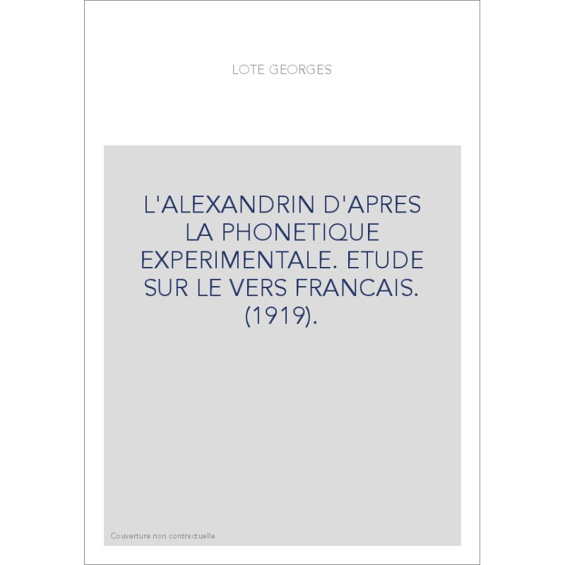 L'ALEXANDRIN D'APRES LA PHONETIQUE EXPERIMENTALE. ETUDE SUR LE VERS FRANCAIS. (1919).