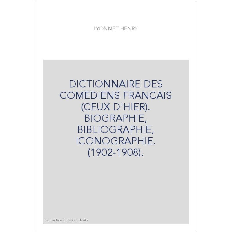 DICTIONNAIRE DES COMEDIENS FRANCAIS (CEUX D'HIER). BIOGRAPHIE, BIBLIOGRAPHIE, ICONOGRAPHIE. (1902-1908).