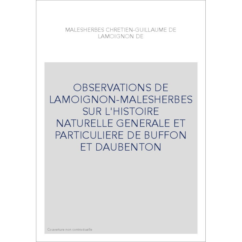 OBSERVATIONS DE LAMOIGNON-MALESHERBES SUR L'HISTOIRE NATURELLE GENERALE ET PARTICULIERE DE BUFFON ET DAUBENTO