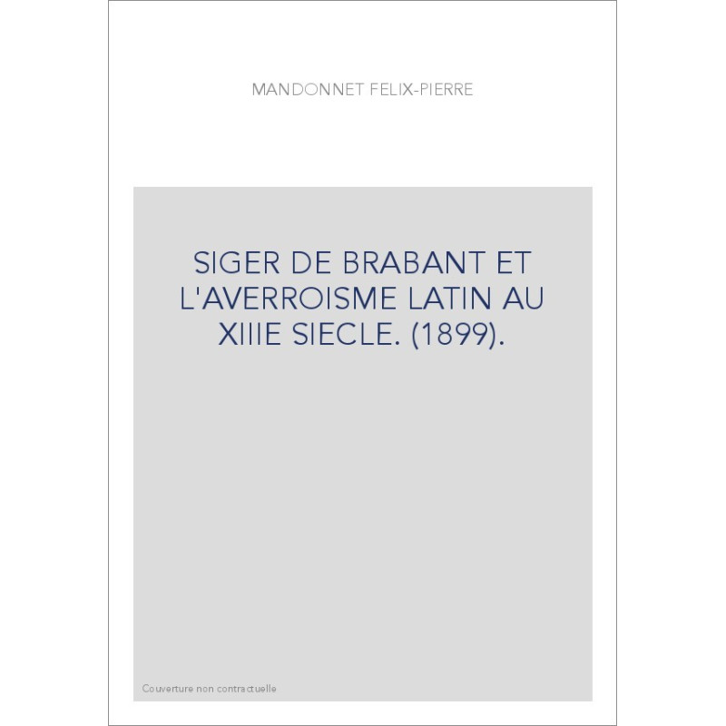 SIGER DE BRABANT ET L'AVERROISME LATIN AU XIIIE SIECLE. (1899).