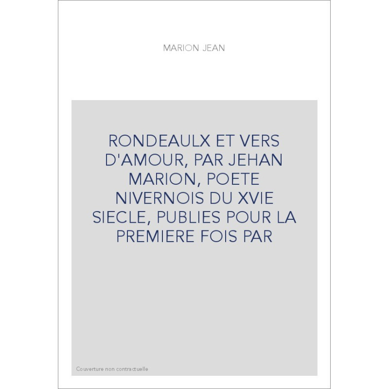 RONDEAULX ET VERS D'AMOUR, PAR JEHAN MARION, POETE NIVERNOIS DU XVIE SIECLE, PUBLIES POUR LA PREMIERE FOIS PA