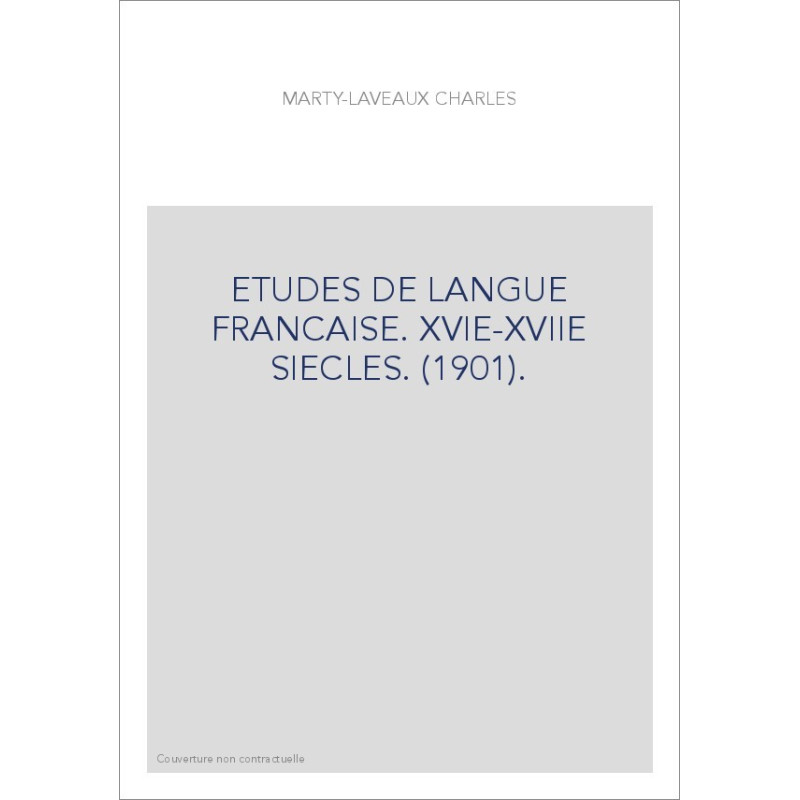 ETUDES DE LANGUE FRANCAISE. XVIE-XVIIE SIECLES. (1901).