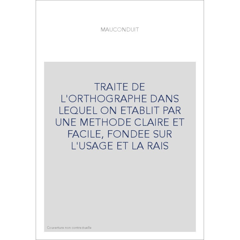 TRAITE DE L'ORTHOGRAPHE DANS LEQUEL ON ETABLIT PAR UNE METHODE CLAIRE ET FACILE, FONDEE SUR L'USAGE ET LA RA View larger