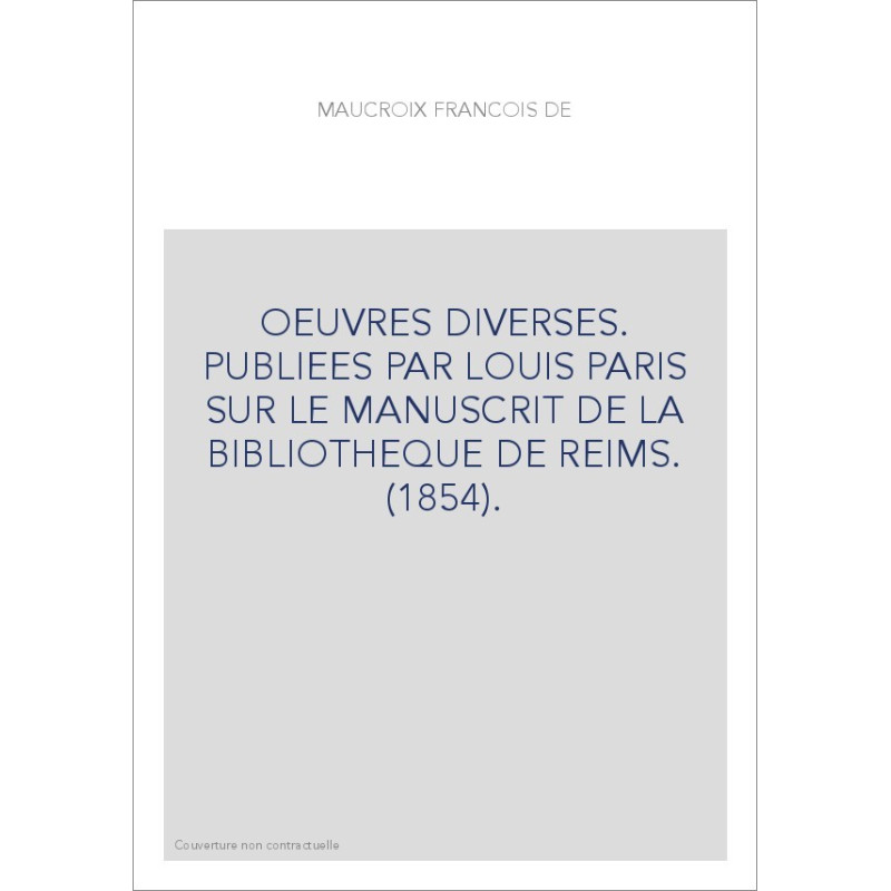 OEUVRES DIVERSES. PUBLIEES PAR LOUIS PARIS SUR LE MANUSCRIT DE LA BIBLIOTHEQUE DE REIMS. (1854).