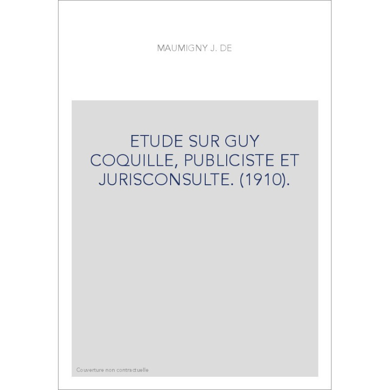 ETUDE SUR GUY COQUILLE, PUBLICISTE ET JURISCONSULTE. (1910). View larger