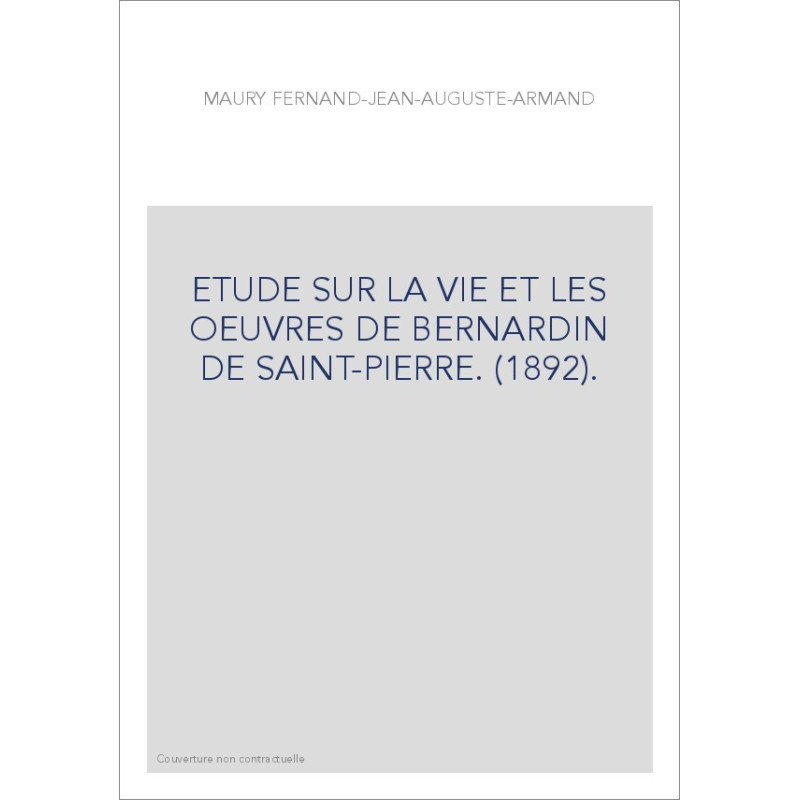 ETUDE SUR LA VIE ET LES OEUVRES DE BERNARDIN DE SAINT-PIERRE. (1892).