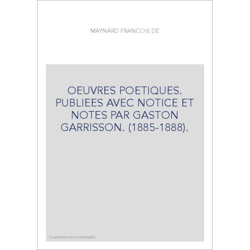 OEUVRES POETIQUES. PUBLIEES AVEC NOTICE ET NOTES PAR GASTON GARRISSON. (1885-1888).