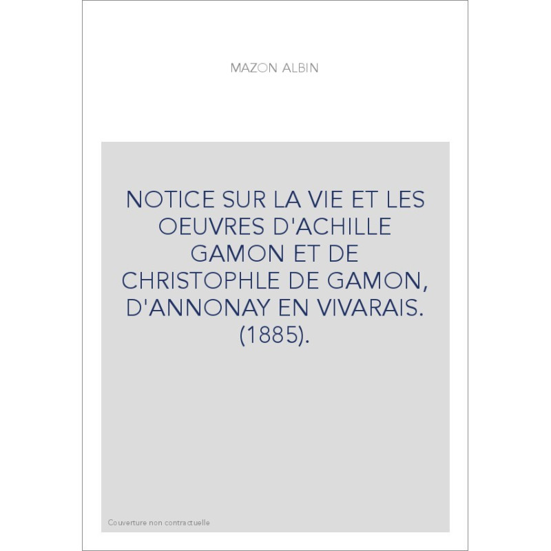 NOTICE SUR LA VIE ET LES OEUVRES D'ACHILLE GAMON ET DE CHRISTOPHLE DE GAMON, D'ANNONAY EN VIVARAIS. (1885).