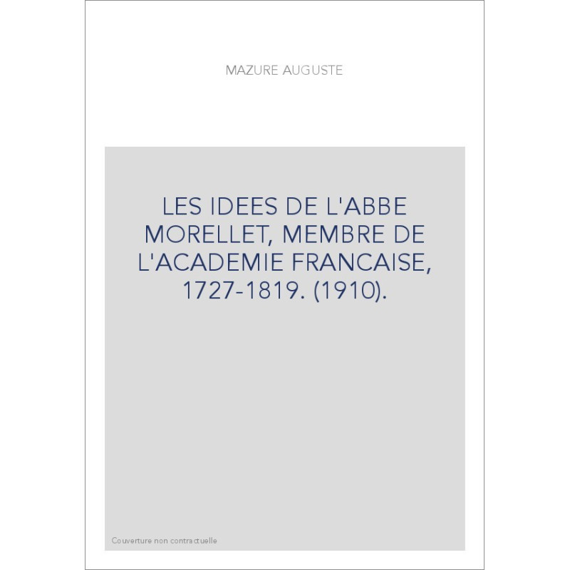 LES IDEES DE L'ABBE MORELLET, MEMBRE DE L'ACADEMIE FRANCAISE, 1727-1819. (1910).