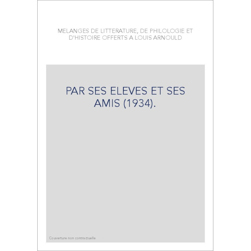 MELANGES DE LITTERATURE, DE PHILOLOGIE ET D'HISTOIRE OFFERTS A LOUIS ARNOULD