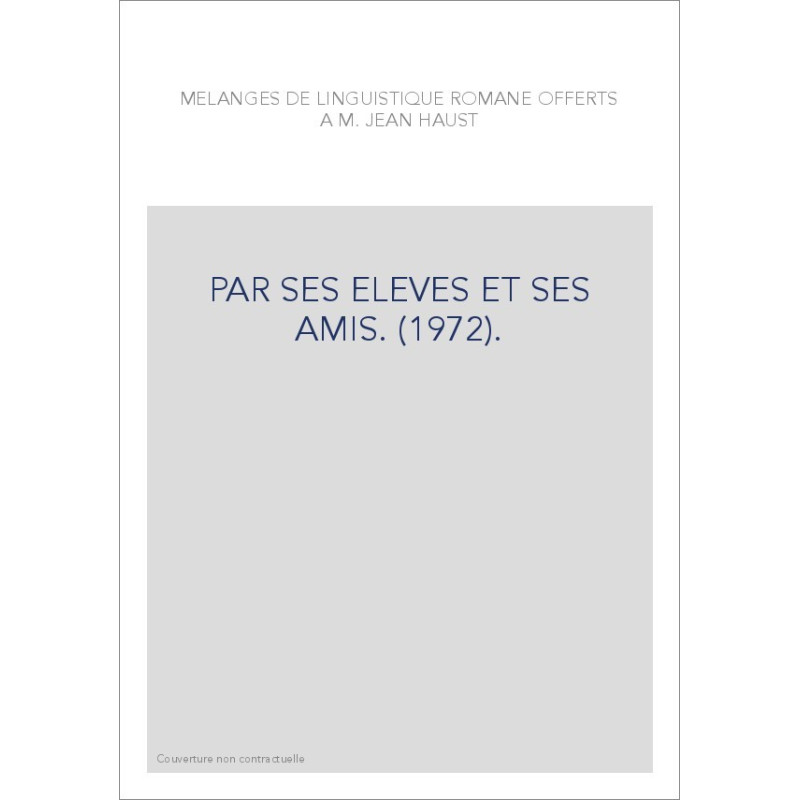 MELANGES DE LINGUISTIQUE ROMANE OFFERTS A M. JEAN HAUST