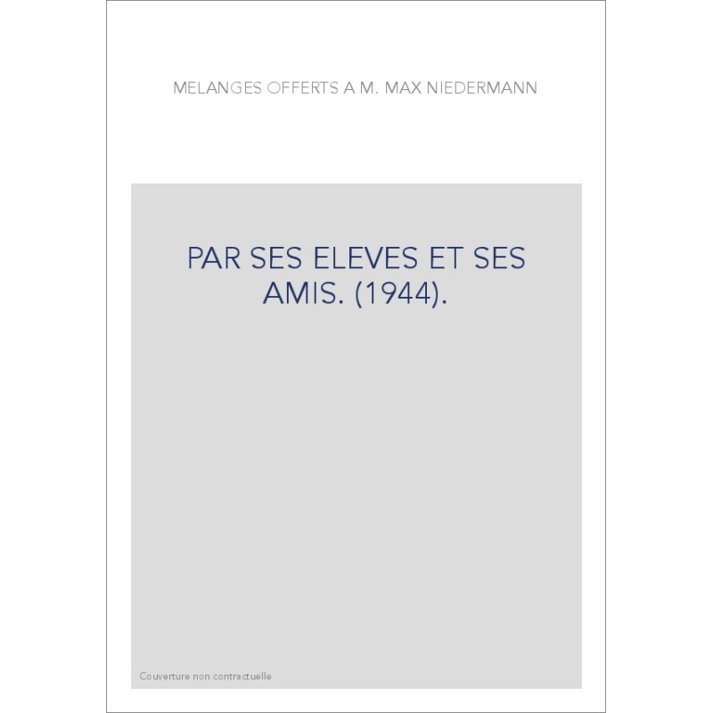 MELANGES OFFERTS A M. MAX NIEDERMANN