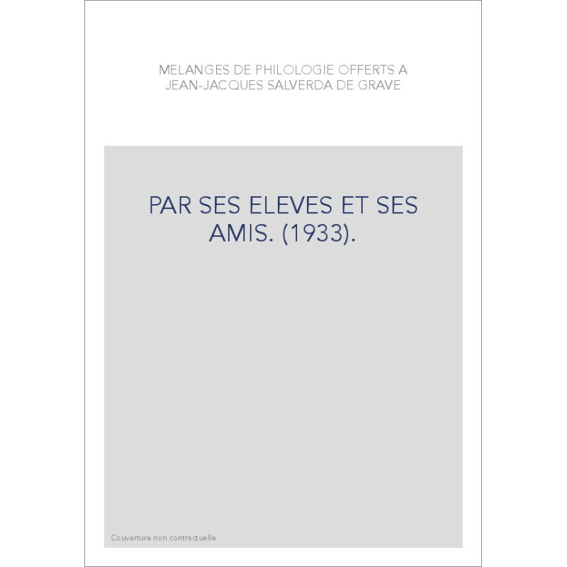 MELANGES DE PHILOLOGIE OFFERTS A JEAN-JACQUES SALVERDA DE GRAVE
