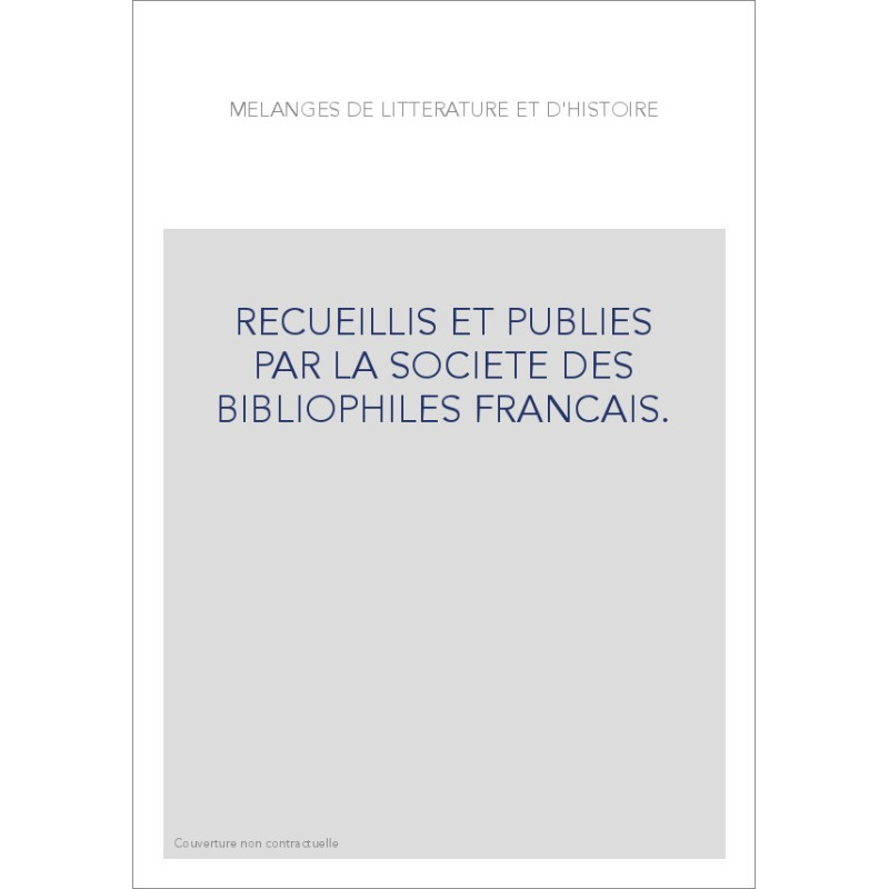 RECUEILLIS ET PUBLIES PAR LA SOCIETE DES BIBLIOPHILES FRANCAIS.