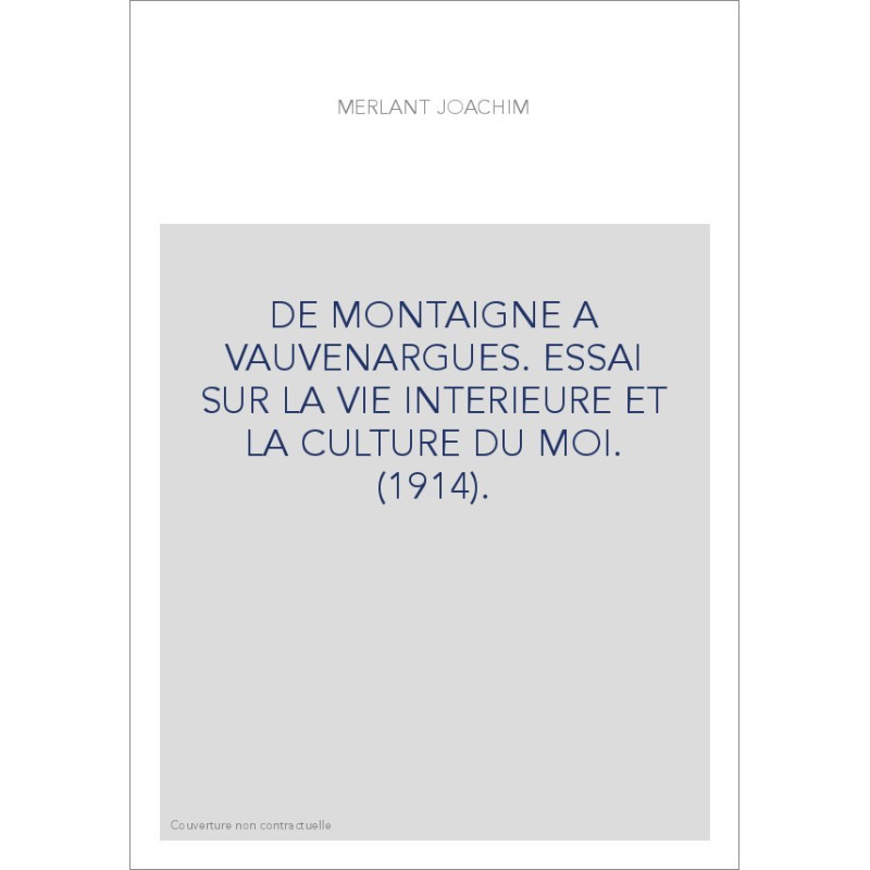 DE MONTAIGNE A VAUVENARGUES. ESSAI SUR LA VIE INTERIEURE ET LA CULTURE DU MOI. (1914).