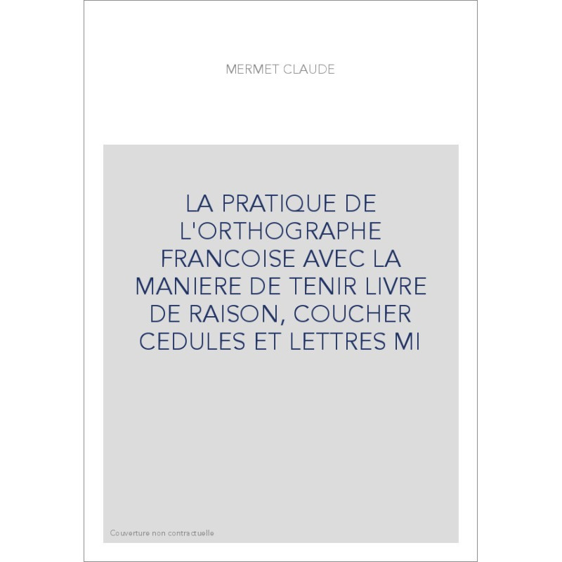 LA PRATIQUE DE L'ORTHOGRAPHE FRANCOISE AVEC LA MANIERE DE TENIR LIVRE DE RAISON, COUCHER CEDULES ET LETTRES M
