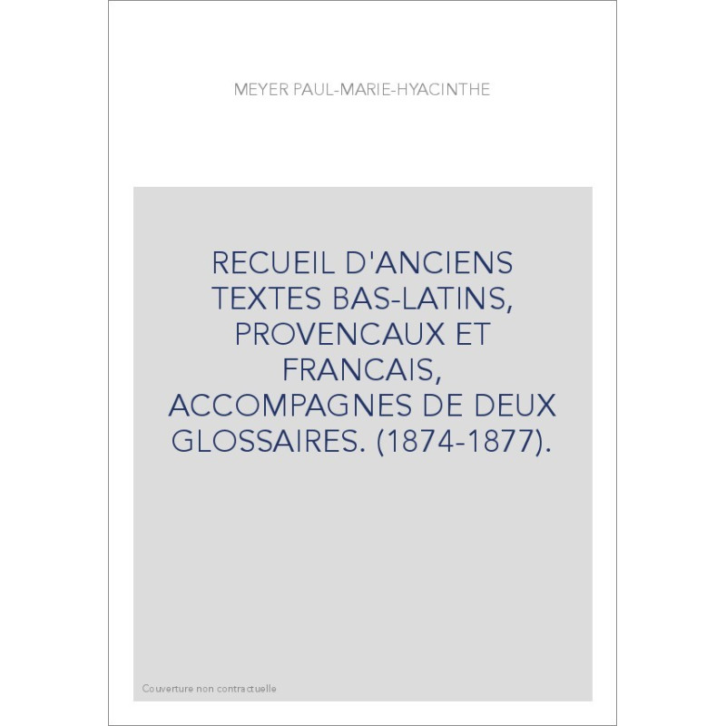 RECUEIL D'ANCIENS TEXTES BAS-LATINS, PROVENCAUX ET FRANCAIS, ACCOMPAGNES DE DEUX GLOSSAIRES. (1874-1877).