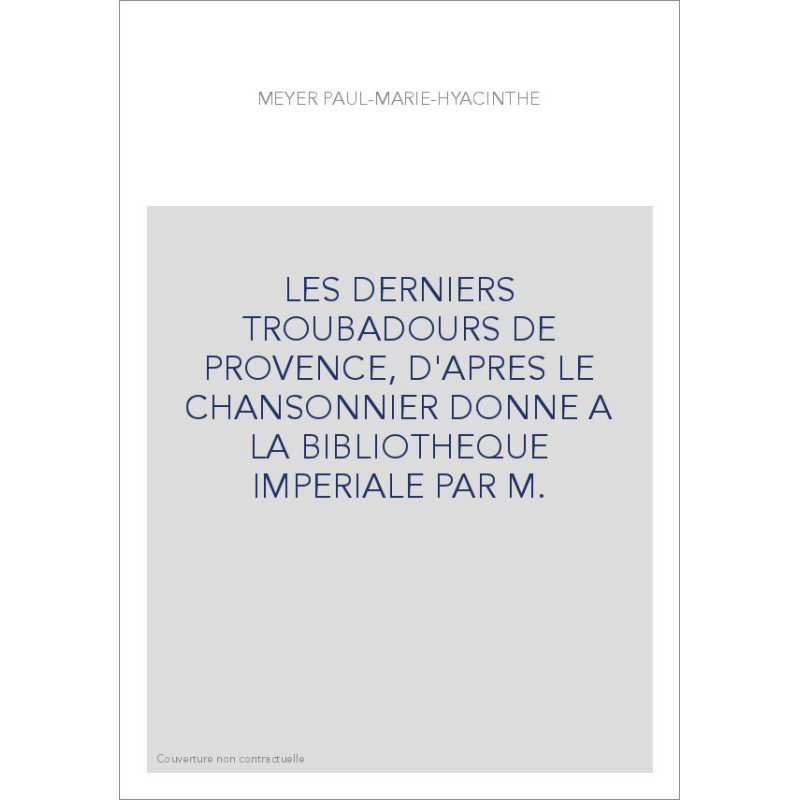 LES DERNIERS TROUBADOURS DE PROVENCE, D'APRES LE CHANSONNIER DONNE A LA BIBLIOTHEQUE IMPERIALE PAR M.