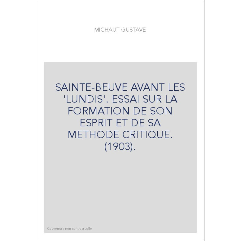 SAINTE-BEUVE AVANT LES 'LUNDIS'. ESSAI SUR LA FORMATION DE SON ESPRIT ET DE SA METHODE CRITIQUE. (1903).