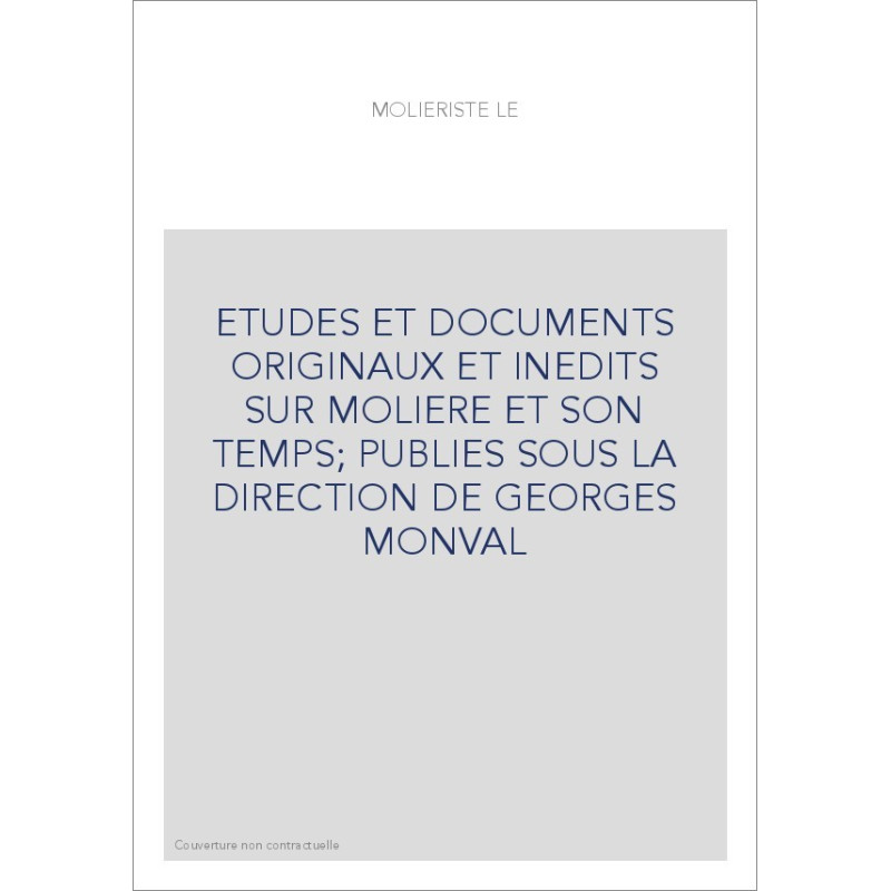 ETUDES ET DOCUMENTS ORIGINAUX ET INEDITS SUR MOLIERE ET SON TEMPS PUBLIES SOUS LA DIRECTION DE GEORGES MONVAL
