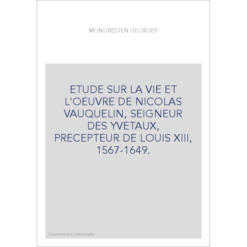 ETUDE SUR LA VIE ET L'OEUVRE DE NICOLAS VAUQUELIN, SEIGNEUR DES YVETAUX, PRECEPTEUR DE LOUIS XIII, 1567-1649.
