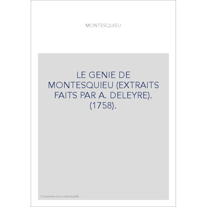 LE GENIE DE MONTESQUIEU (EXTRAITS FAITS PAR A. DELEYRE). (1758).