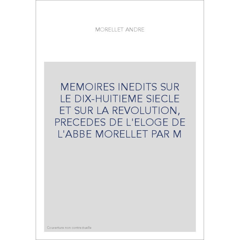 MEMOIRES INEDITS SUR LE DIX-HUITIEME SIECLE ET SUR LA REVOLUTION, PRECEDES DE L'ELOGE DE L'ABBE MORELLET PAR