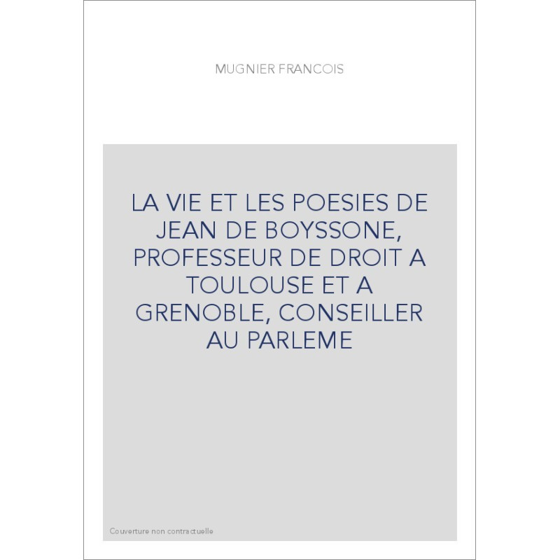 LA VIE ET LES POESIES DE JEAN DE BOYSSONE, PROFESSEUR DE DROIT A TOULOUSE ET A GRENOBLE, CONSEILLER AU PARLEME