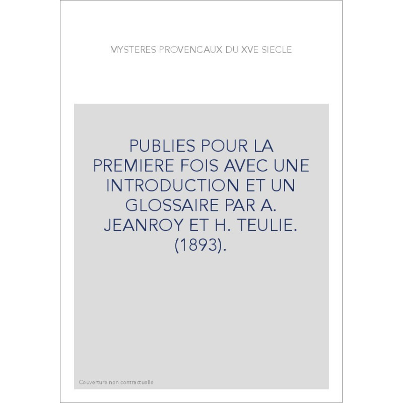 MYSTERES PROVENCAUX DU XVE SIECLE