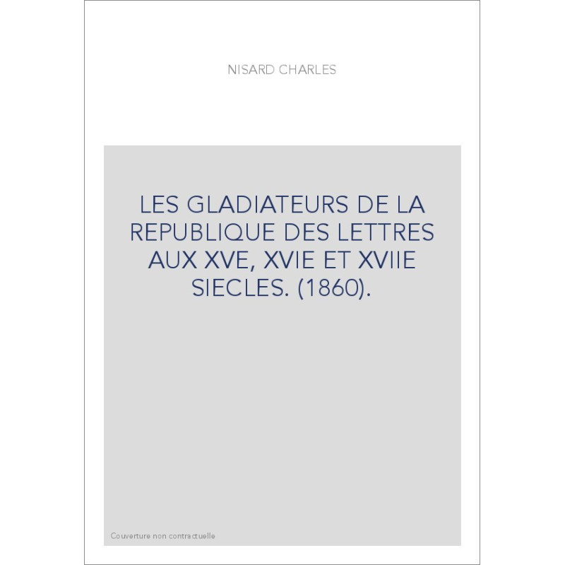 LES GLADIATEURS DE LA REPUBLIQUE DES LETTRES AUX XVE, XVIE ET XVIIE SIECLES. (1860).