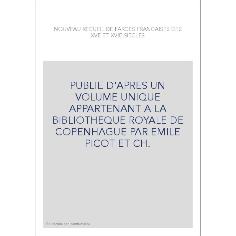 NOUVEAU RECUEIL DE FARCES FRANCAISES DES XVE ET XVIE SIECLES