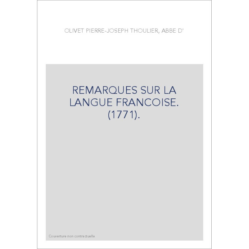 REMARQUES SUR LA LANGUE FRANCOISE. (1771).