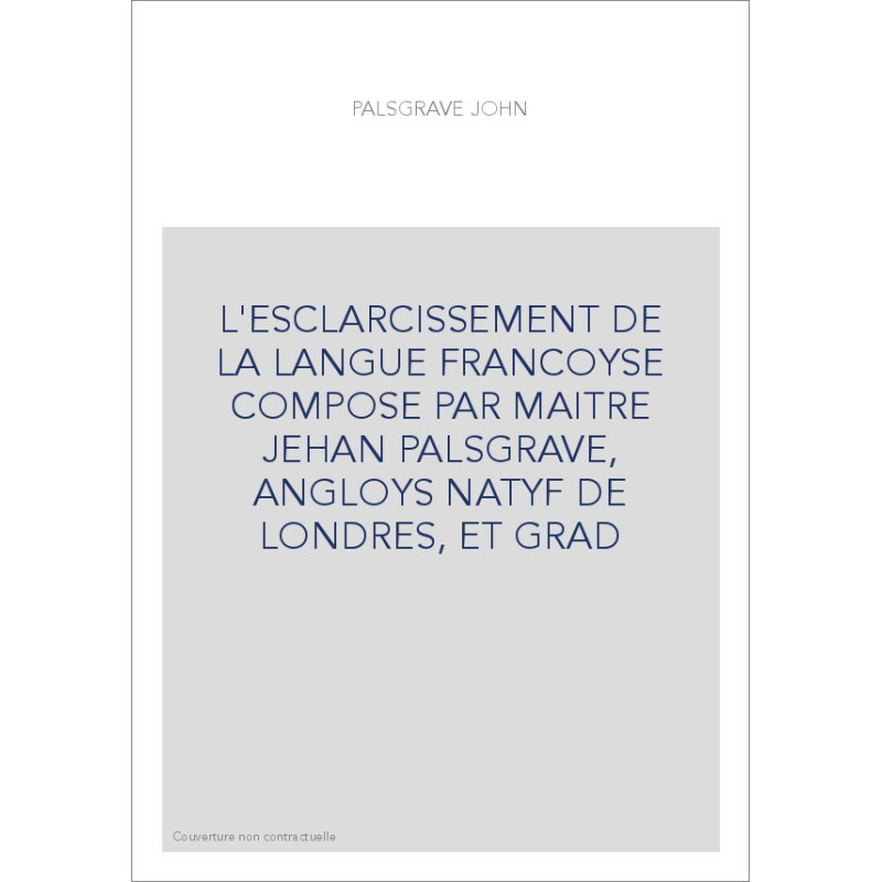 L'ESCLARCISSEMENT DE LA LANGUE FRANCOYSE COMPOSE PAR MAITRE JEHAN PALSGRAVE, ANGLOYS NATYF DE LONDRES, ET GRA