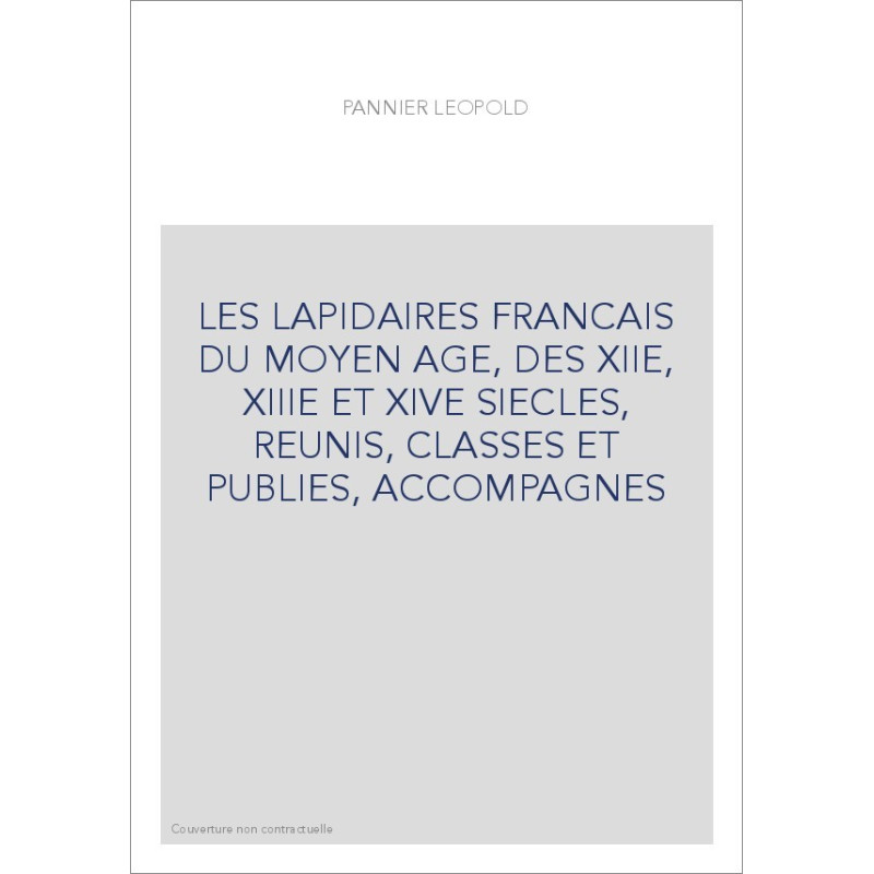 LES LAPIDAIRES FRANCAIS DU MOYEN AGE, DES XIIE, XIIIE ET XIVE SIECLES, REUNIS, CLASSES ET PUBLIES, ACCOMPAGNES