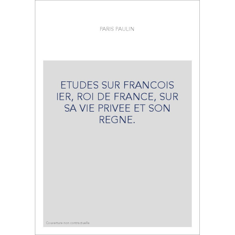 ETUDES SUR FRANCOIS IER, ROI DE FRANCE, SUR SA VIE PRIVEE ET SON REGNE.