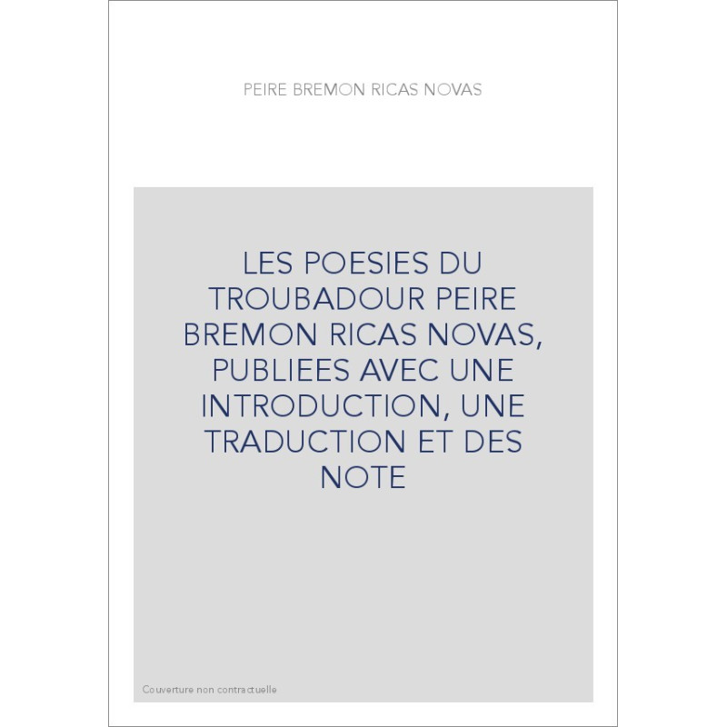 LES POESIES DU TROUBADOUR PEIRE BREMON RICAS NOVAS, PUBLIEES AVEC UNE INTRODUCTION, UNE TRADUCTION ET DES NOTE